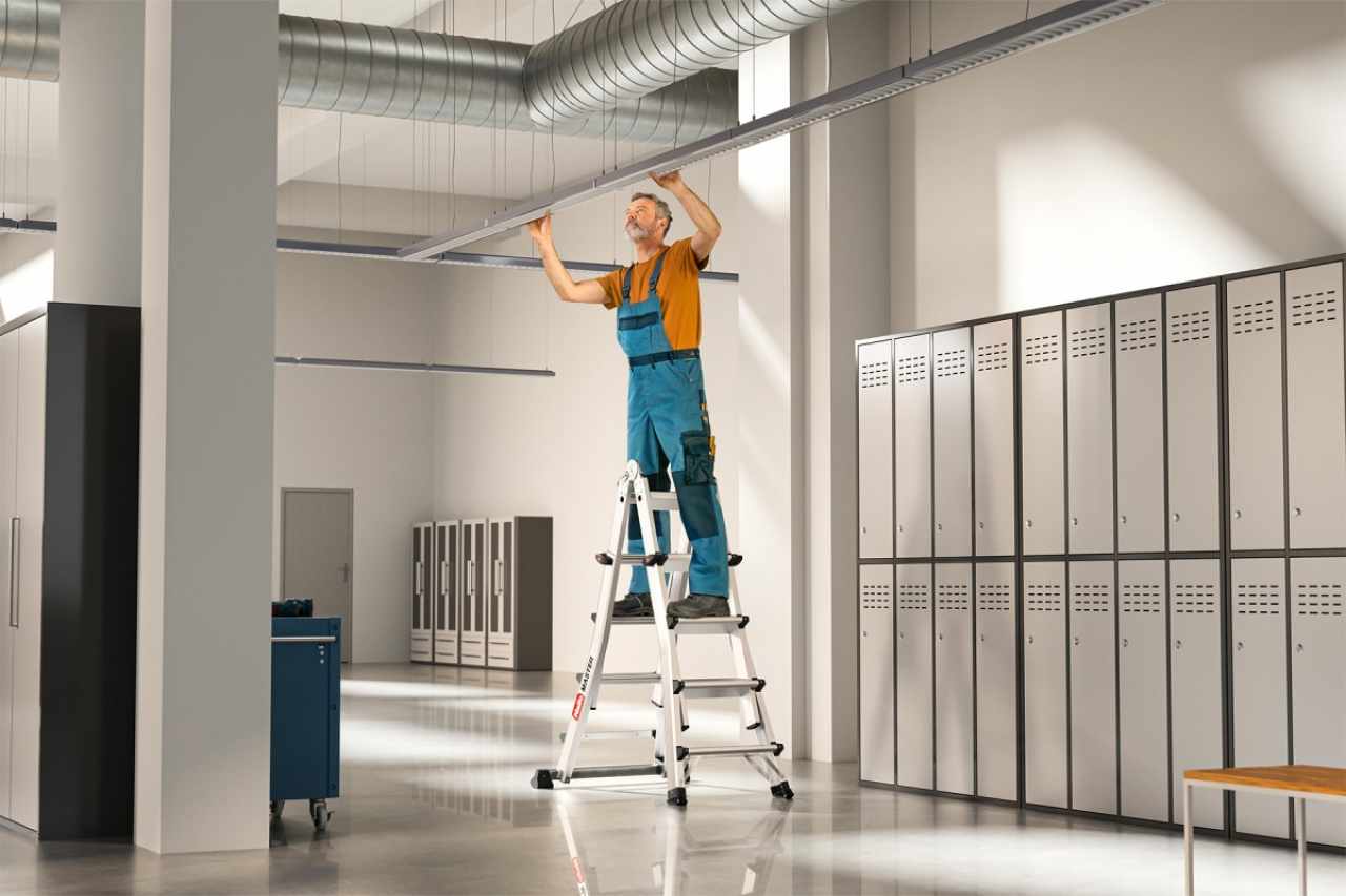 HAILO M100 4x4 lépcsős Multifunkciós létra kiegészítő lépésfelülettel a biztonságos munkavégzés érdekében