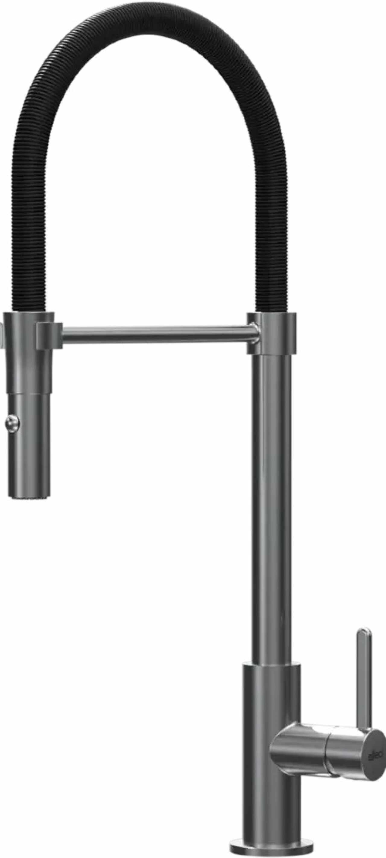 termékek Csaptelepek Zuhanyfejes csaptelepek HKT Bahia csaptelep állítható zuhanyfejjel, fekete szilikon gégecsővel, 360°-ban elforgatható, hidegindítással, nemesacél