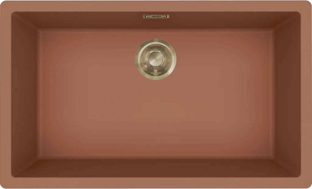 HKT ZEN 130 Keratek alá- és ráépíthető mosogató, színes lefolyó- és túlfolyó szerelvényekkel, 80 cm-es korpuszokhoz,terrakotta-arany