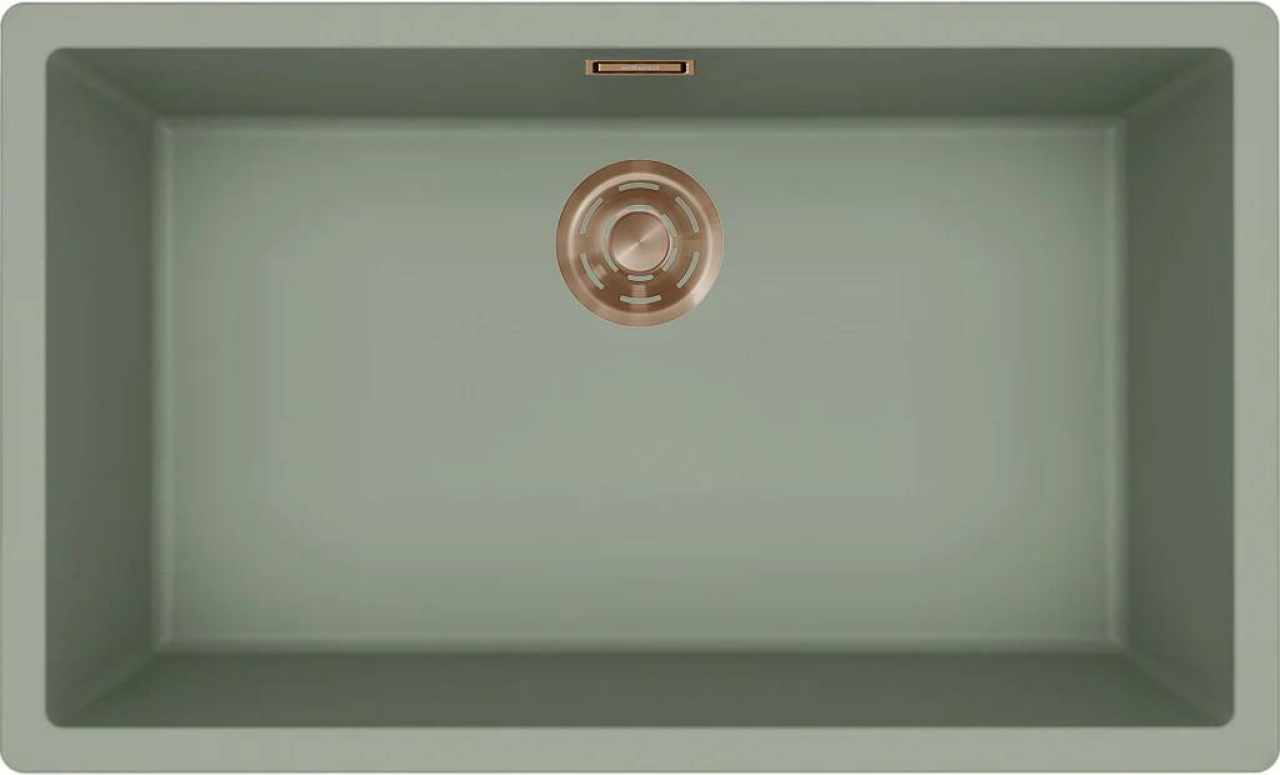 HKT ZEN 130 Keratek alá- és ráépíthető mosogató, színes lefolyó- és túlfolyó szerelvényekkel, 80 cm-es korpuszokhoz,zöld-bronz