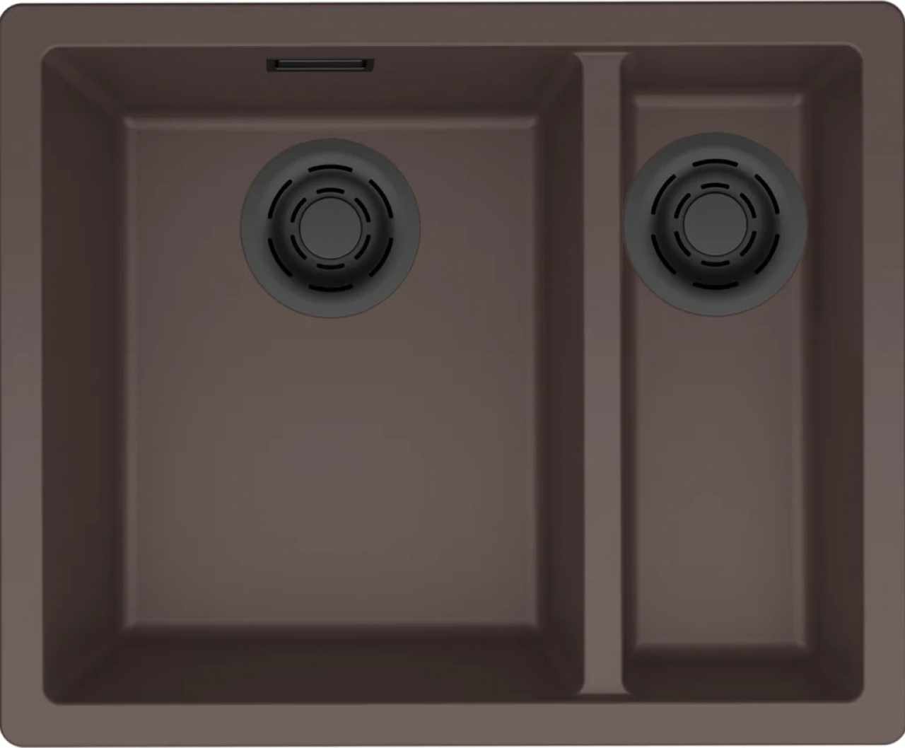 HKT ZEN 150 Keratek alá- és ráépíthető mosogató, színes lefolyó- és túlfolyó szerelvényekkel, 60 cm-es korpuszokhoz,barna-fekete