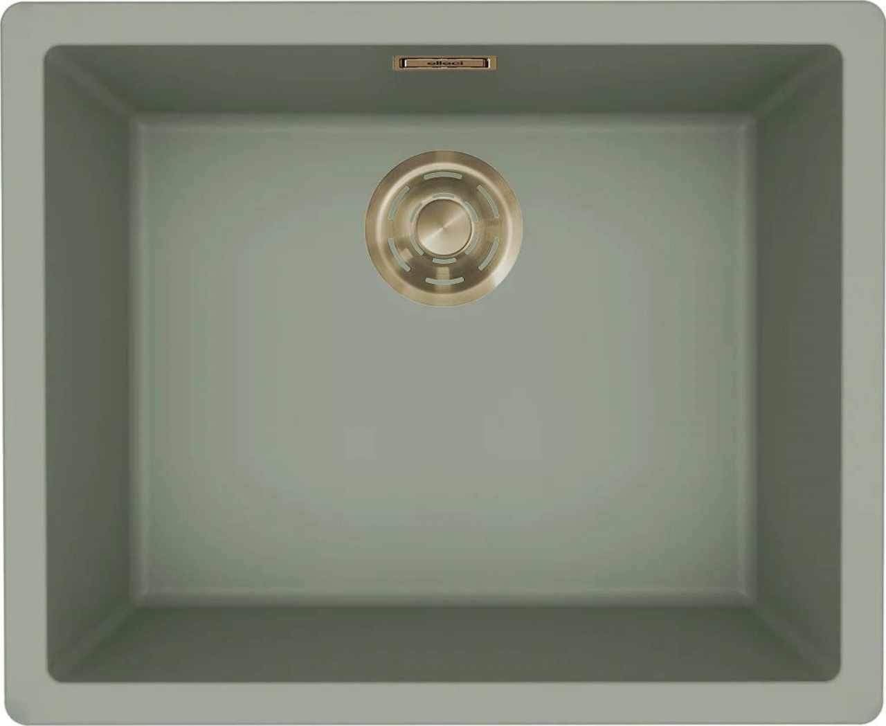 HKT ZEN F 105 Keratek szintbeépíthető mosogató, színes lefolyó- és túlfolyó szerelvényekkel, 60 cm-es korpuszokhoz,zöld-arany